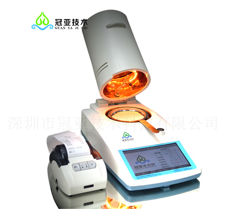 《冠亚技术》CS-001系列豆沙月饼水分测定仪国标标准/食品月饼水分活度仪技术参数操作及显示采用7寸液晶触摸屏,可用来测量任何物质中的水分含量,仪器根据热解重量原理,测试开始水分测定仪测定样品重量,然后样品由内置的卤素干燥装置和水分蒸发器快速加热,在干燥过程中,仪器连续测定样品重量并显示丢失的水分。干燥结束时,显示水分含量或者干燥物质含量作为最终的结果。在实际的应用中,最重要的是加热的速度,与常规的红外加热或者烘箱相比,例如卤素干燥装置在达到加热功率时候所需的时间短,同时,此仪器还可以使用高温,这是另一种缩短干燥时间的因素,样品材质的均匀加热可确保良好的干燥结果允许使用少量的样品。