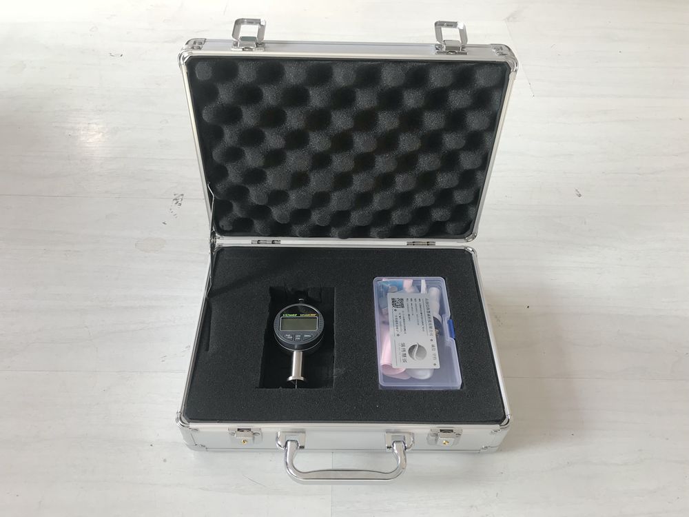 便携式数显凹坑深度仪所带附件:仪器盒、小扳手、两个探针、一块电池、说明书、合格证、保修卡、清洗液50mL一瓶、擦拭布一块、手套一双、调零基块一块。
