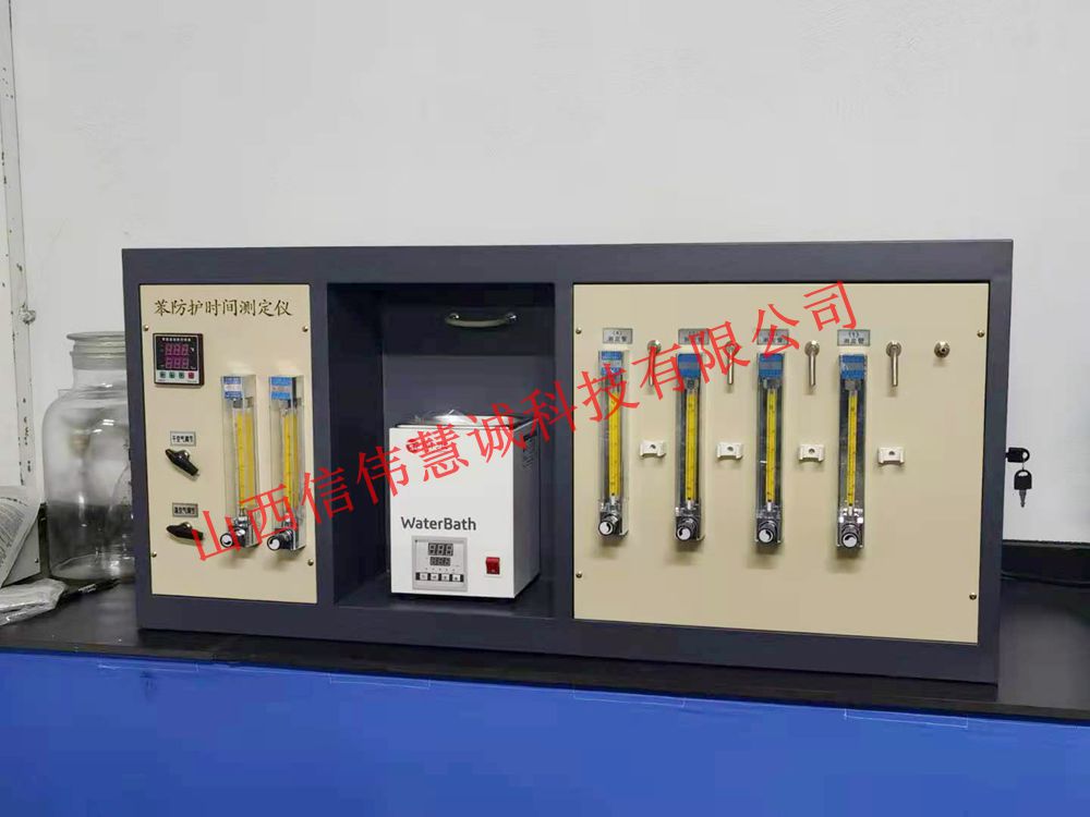 苯蒸气防护时间测定仪由仪器面板、空气过滤罐、湿度调节器、流量计、恒温水浴、测定管、苯蒸气发生器等组成。