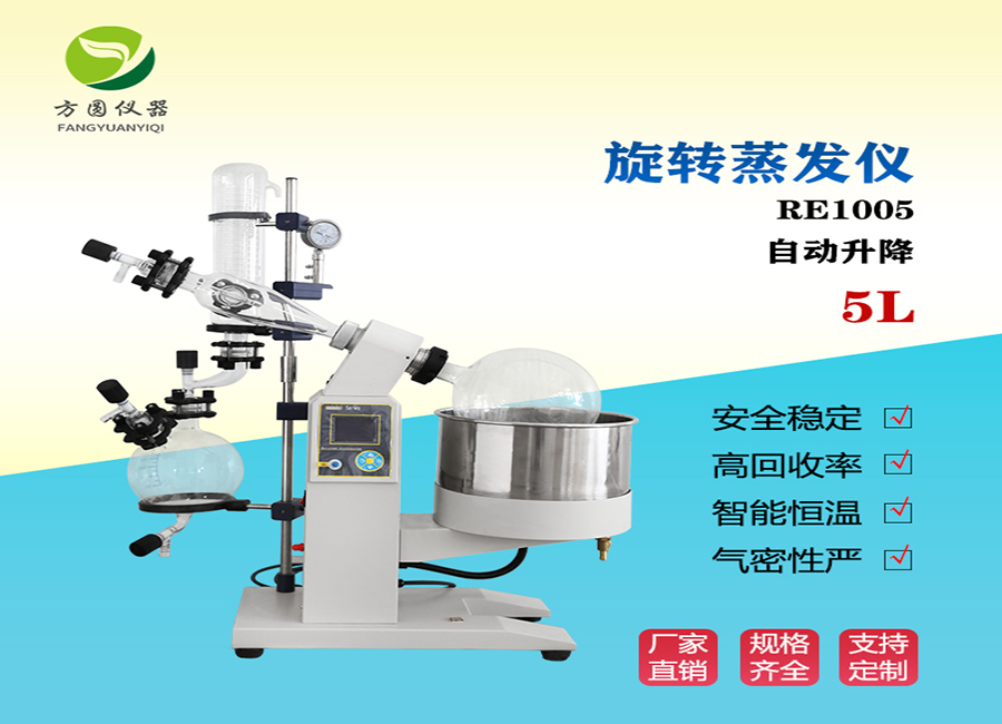 旋转蒸发器我们平时主要用于在需要减压条件下连续蒸馏大量易挥发性溶剂。特别是对萃取液的浓缩和色谱分离时的接收液的蒸馏,这样可以分离和纯化反应产物。旋转蒸发器的工作原理机制也就是在减压蒸馏,换句话说在减压情况下,当溶剂蒸馏时,蒸馏烧瓶在不停的转动。旋转蒸发器的物理结构:里面的蒸馏烧瓶可是一个带有标准磨口接口的梨形或圆底烧瓶,这样通过一高度回流蛇形冷凝管与减压泵相连,回流冷凝管另一开口与带有磨口的接收烧瓶相连,用于接收被蒸发的有机溶剂。在冷凝管与减压泵之间有一三通活塞,当体系与大气相通时,可以将蒸馏烧瓶,接液烧瓶取下,转移溶剂,当体系与减压泵相通时,则体系应处于减压状态。使用时,应先减压,再开动电动机转动蒸馏烧瓶,结束时,应先停机,再通大气,以防蒸馏烧瓶在转动中脱落。作为蒸馏的热源,常配有相应的恒温水槽。