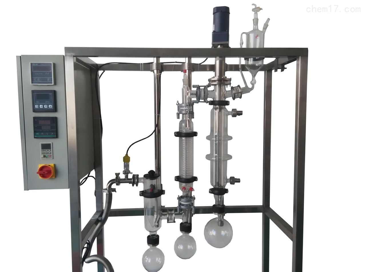 薄膜蒸发器是通过旋转刮膜器强制成膜,并高速流动,热传递效率高,停留时间短,可在真空条件下进行降膜蒸发的一种新型蒸发器。薄膜蒸发器是一种蒸发器的类型,特点是物料液体沿加热管壁呈膜状流动而进行传热和蒸发,优点是传热效率高,蒸发速度快,物料停留时间短,因此特别适合热敏性物质的蒸发。